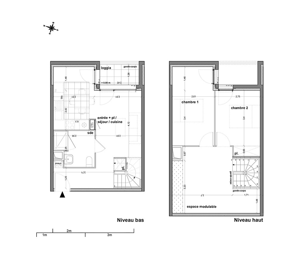 L'ensemble a été pensé comme une superposition de strates en double niveaux, combinant commerces et logements, duplex et simplex, T1 et T5.