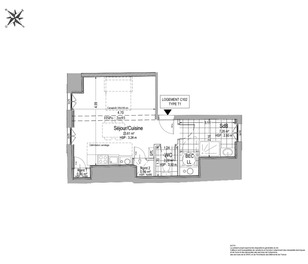 Appartement T1 n°C102 à Troyes (10000)