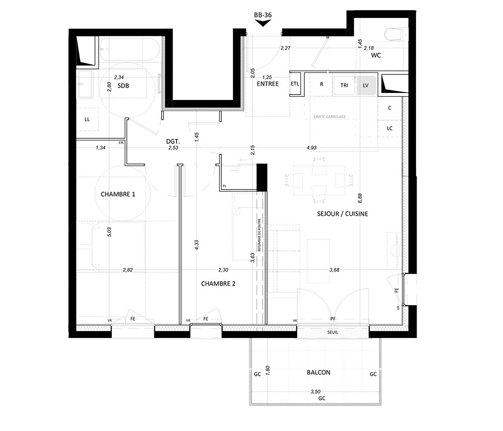 Appartement T3 n°BB36 à Lieusaint (77127)