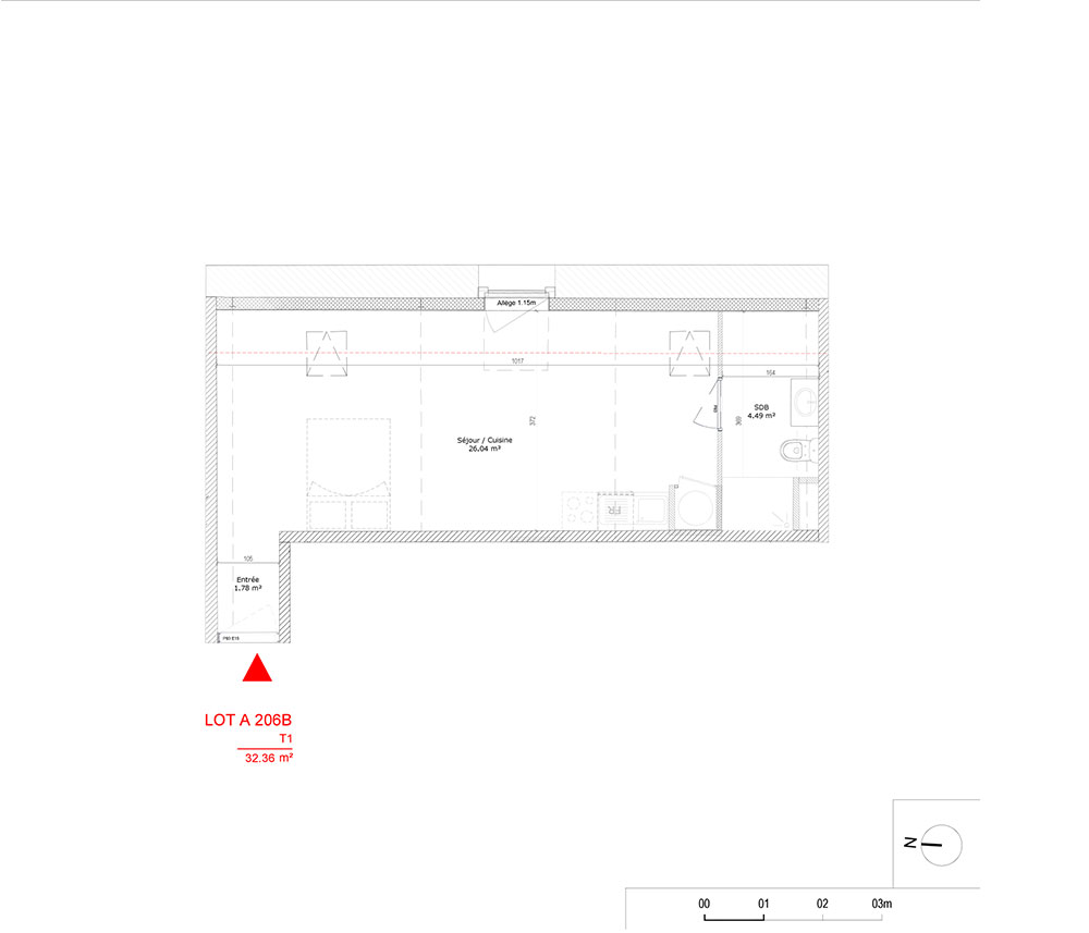 Appartement T1 n°A206B à Douai (59500)
