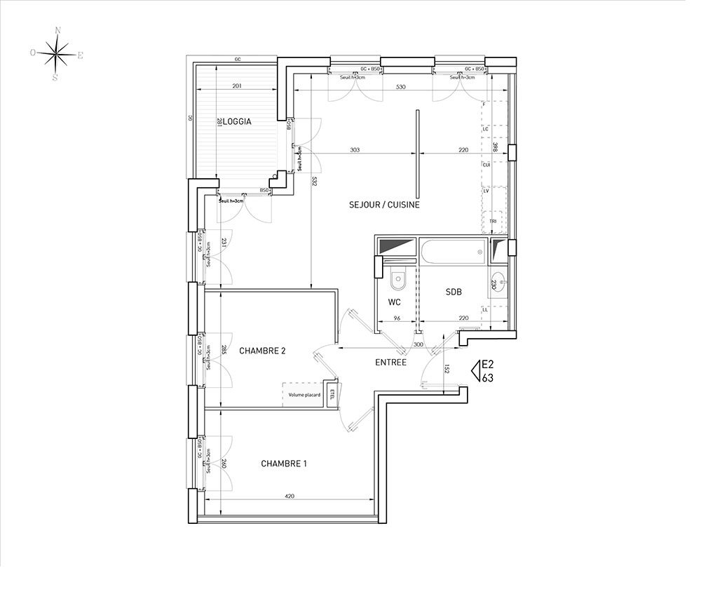 Appartement T3 n°E2063 à Villeurbanne (69100)