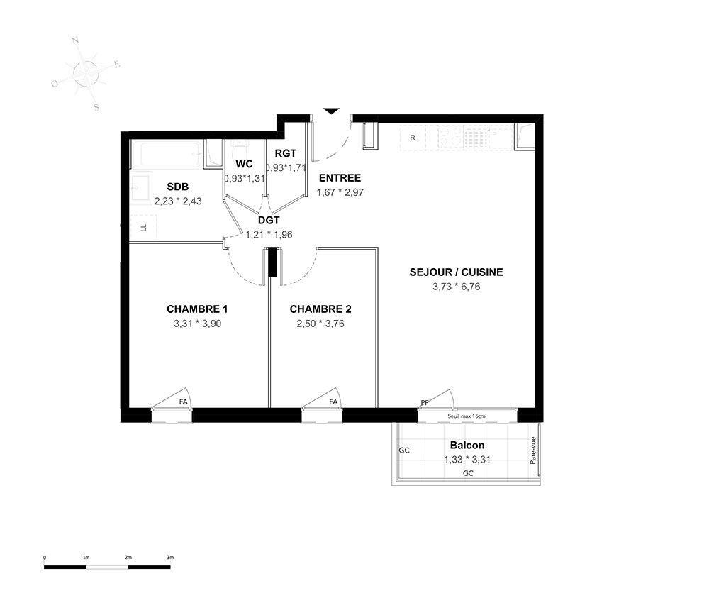 Appartement T3 n°C204 à Aubervilliers (93300)