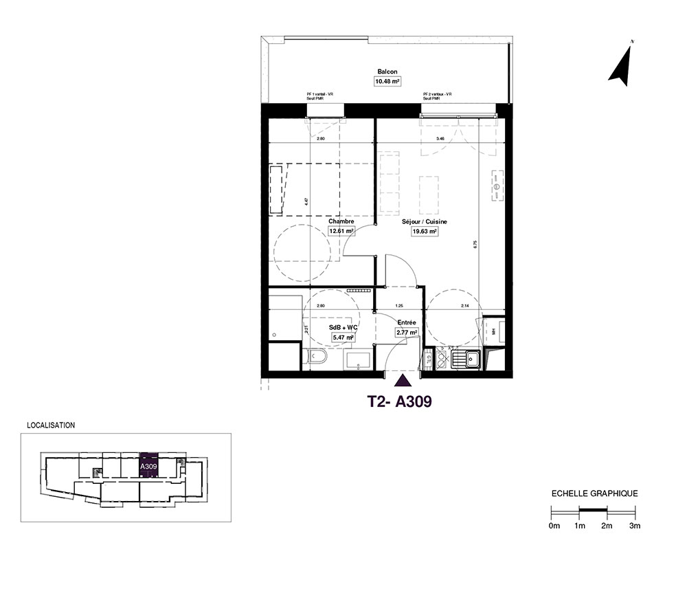 Appartement T2 n°A309 à Boulogne-sur-Mer (62200)