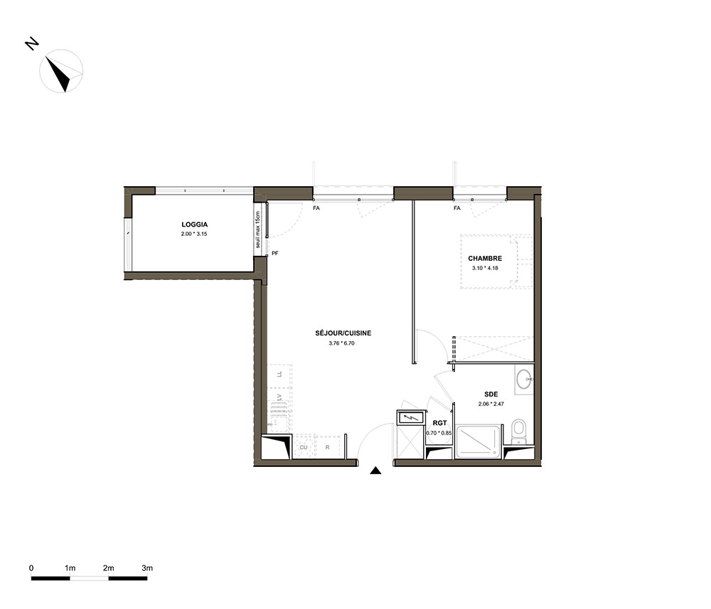 La résidence Botanika, imaginée par l'agence Colegram Architectes, se distingue par une architecture moderne et épurée. Ses deux bâtiments, aux lignes sobres et contemporaines, sont habillés d'un enduit blanc cassé qui reflète une grande légèreté visuelle. Les façades sont animées par des loggias, certaines avec des garde-corps en béton gris-vert, qui rythment l'ensemble tout en apportant une touche graphique à la composition. Le choix de l'architecture repose sur l'intégration parfaite dans le quartier, tout en offrant un cadre agréable et contemporain aux résidents. Les appartements de Botanika, allant du 2 au 4 pièces, sont conçus pour offrir un confort optimal au quotidien. Chaque logement bénéficie d'une luminosité naturelle grâce à une double orientation ou une exposition plein sud, ainsi qu'à des baies généreuses. Les pièces de vie s'ouvrent sur des loggias, véritable prolongement de l'espace intérieur, offrant ainsi un coin de tranquillité et de détente. En outre, les appartements sont pensés pour maximiser l'intimité et la fonctionnalité, avec des chambres séparées des espaces de vie et des plans offrant dans la grande majorité des rangements pratiques comme un cellier ou une suite parentale dans les appartements de 4 pièces.