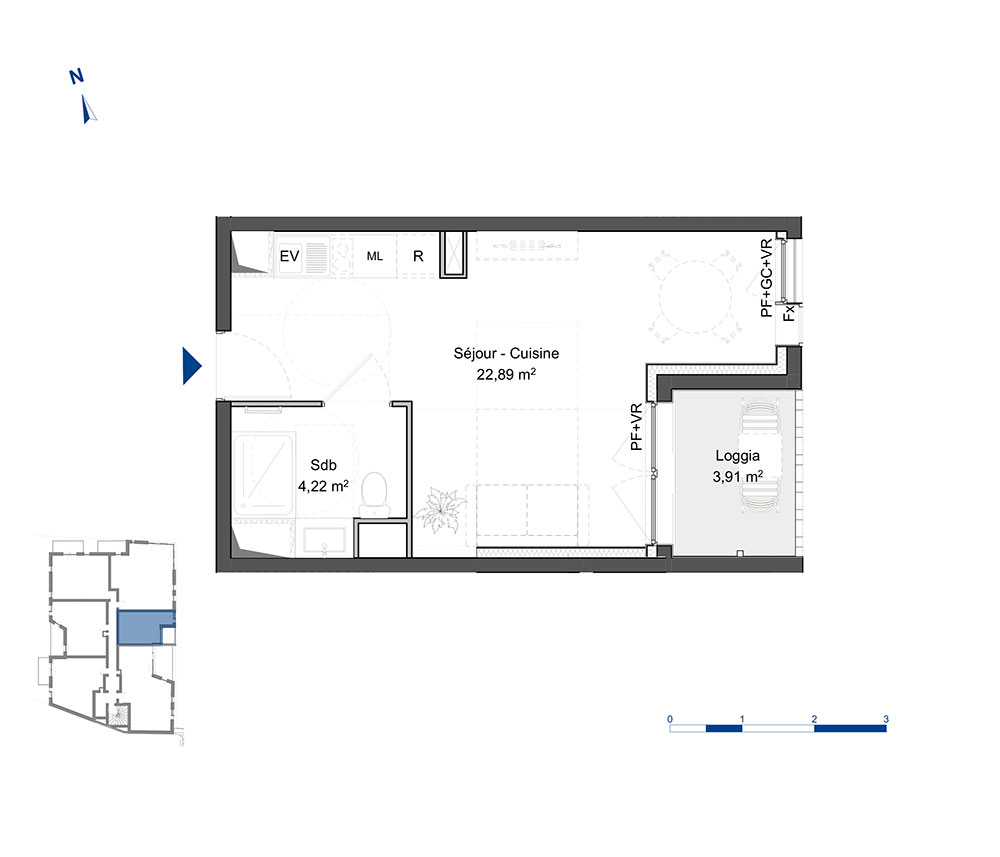 Appartement T1 n°LA205 à Amiens (80000)