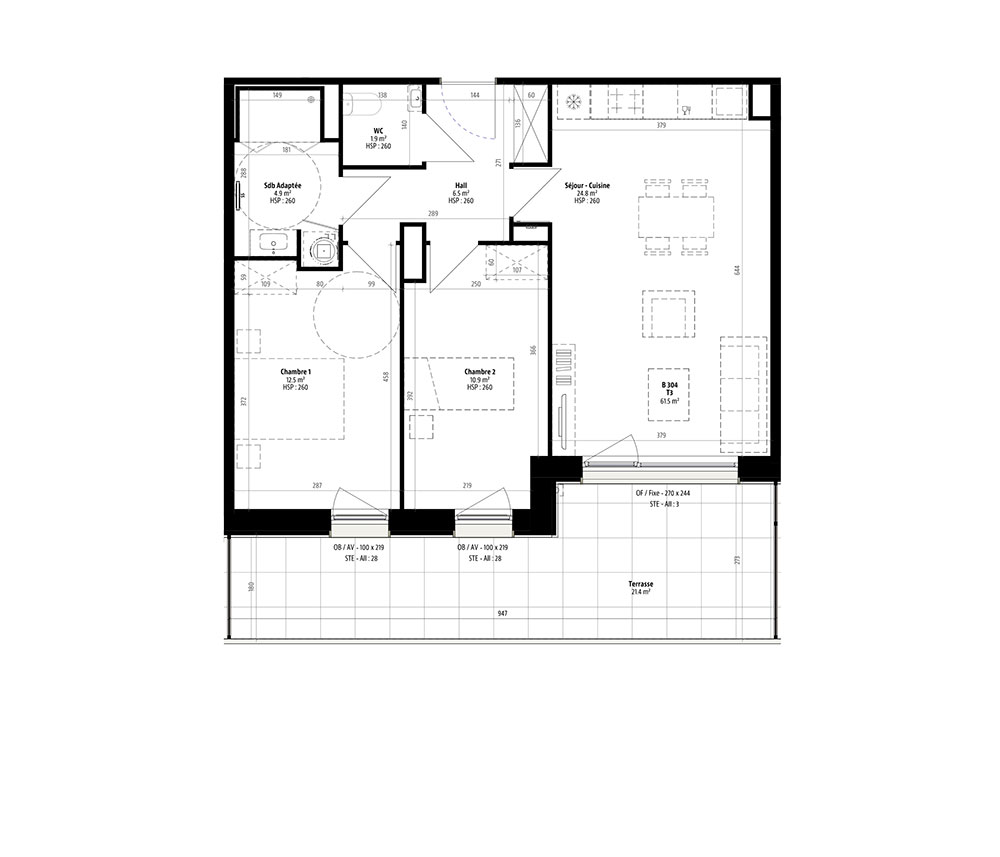 Appartement T3 n°B304 à Villeneuve-d'Ascq (59491)