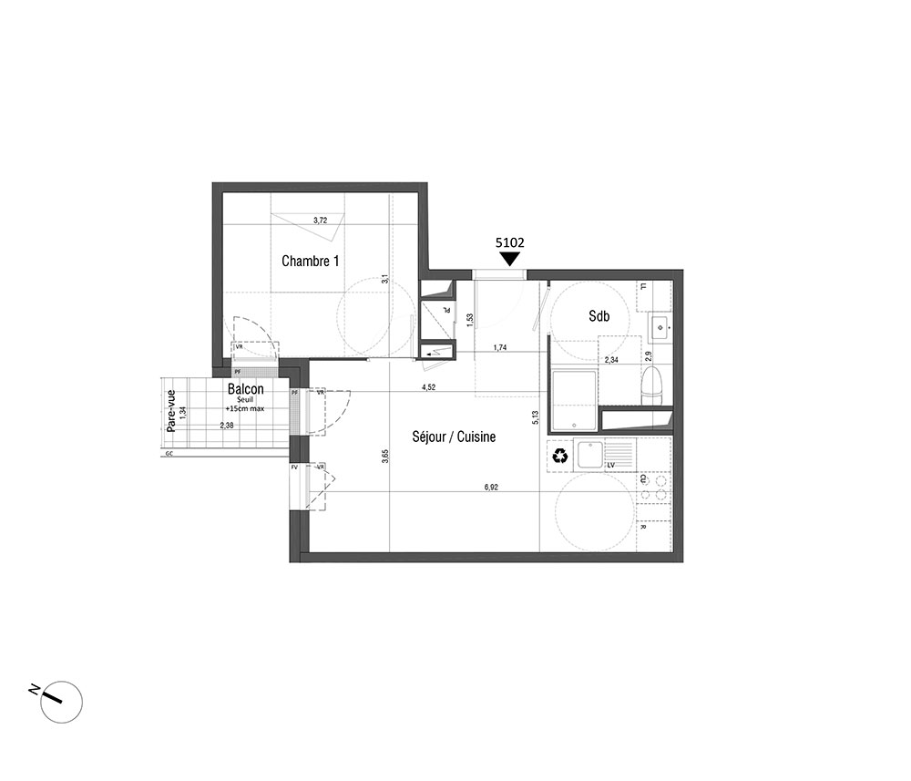 Appartement T2 n°5102 à Jouy-le-Moutier (95280)