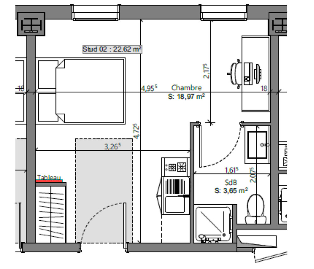 22,76 m² habitables