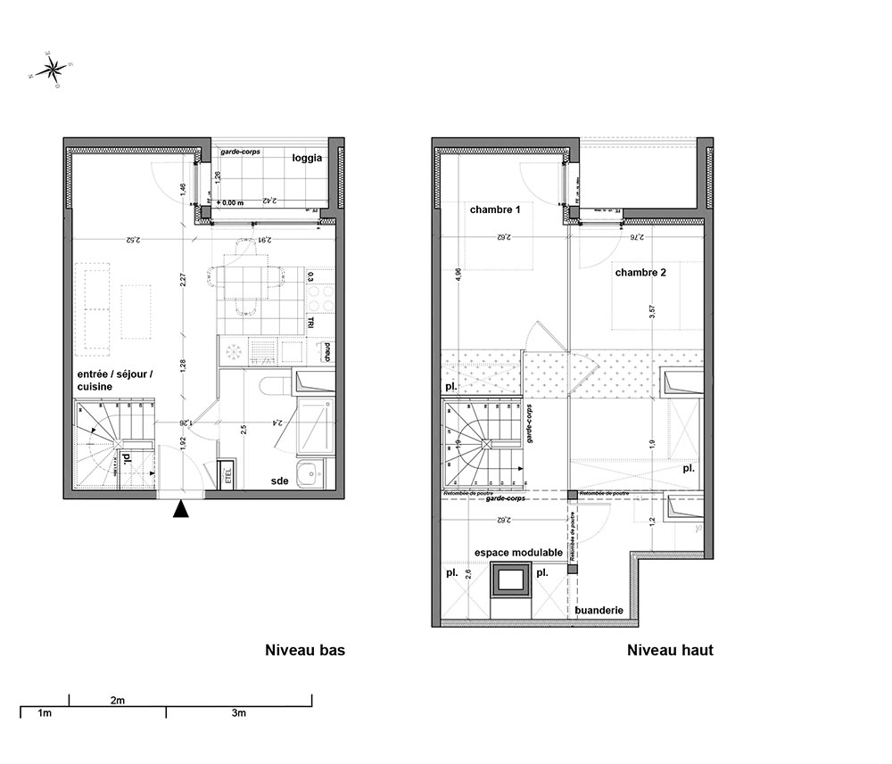 L'ensemble a été pensé comme une superposition de strates en double niveaux, combinant commerces et logements, duplex et simplex, T1 et T5.
