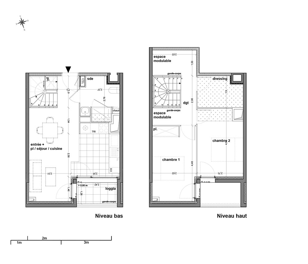 L'ensemble a été pensé comme une superposition de strates en double niveaux, combinant commerces et logements, duplex et simplex, T1 et T5.