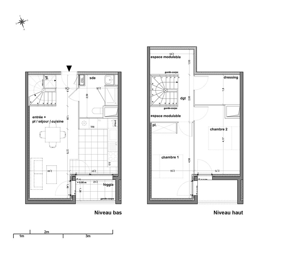 L'ensemble a été pensé comme une superposition de strates en double niveaux, combinant commerces et logements, duplex et simplex, T1 et T5.