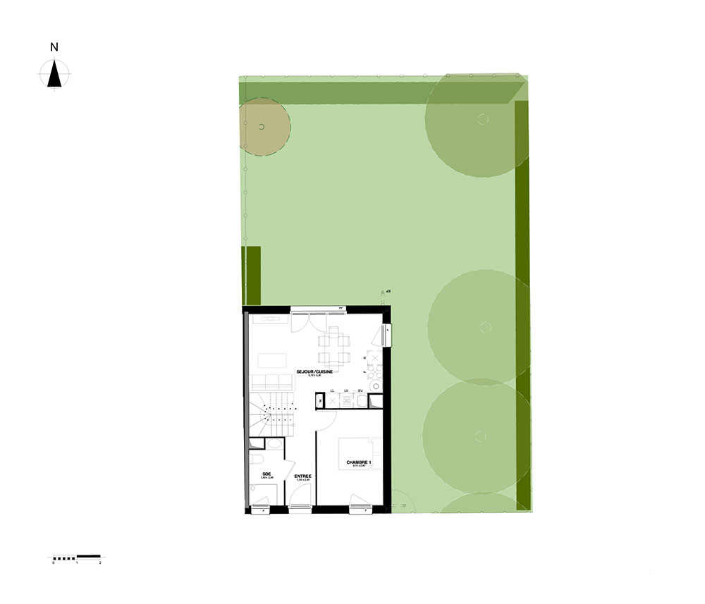 Conçue par l'atelier SOHO Aquitaine, la résidence adopte une architecture contemporaine et discrète parfaitement intégrée dans son environnement naturel. Organisée en îlots à taille humaine, elle propose un choix rare entre maisons individuelles de 2 à 3 chambres et appartements du 2 à 3 pièces, répartis dans de petits bâtiments d'un seul étage. Les façades aux teintes douces, les volets aluminium et les toitures en tuiles grand moule participent à l'élégance d'ensemble, offrant une esthétique intemporelle et durable. Un cadre de vie verdoyant et serein Pensé comme un havre de tranquillité, le domaine offre un environnement paysager exceptionnel, avec plus de 200 arbres plantés, dont des fruitiers, des haies bocagères et des massifs boisés. Ce cadre favorise à la fois la biodiversité et les moments de détente partagés, grâce à un espace engazonné commun et un composteur de quartier. À l'intérieur, les logements privilégient confort et fonctionnalité : séjours lumineux, double orientation pour les appartements, jardins privatifs ou balcons, prestations soignées, chauffage individuel et nombreux rangements. Deux locaux vélos complètent l'ensemble pour encourager une mobilité douce au quotidien.