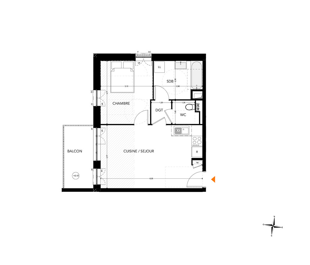 44,05 m² habitables
