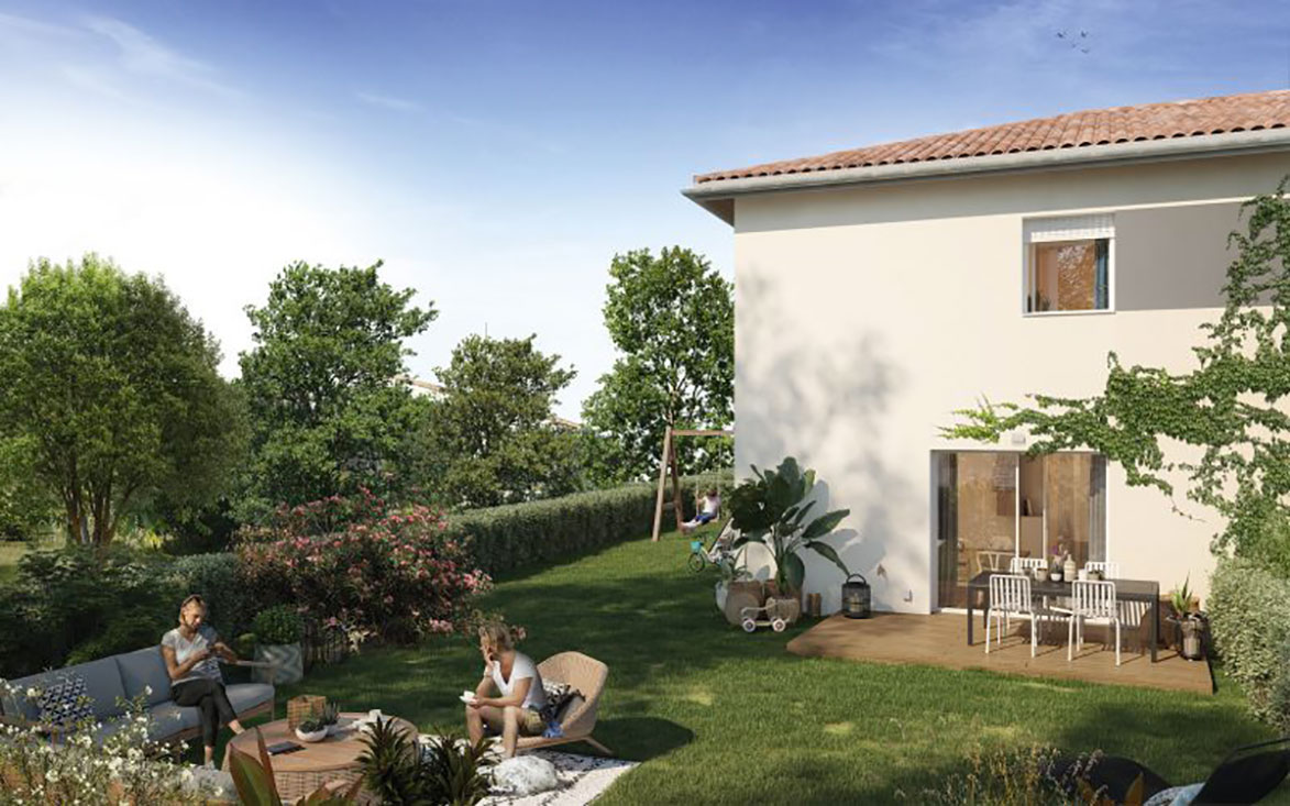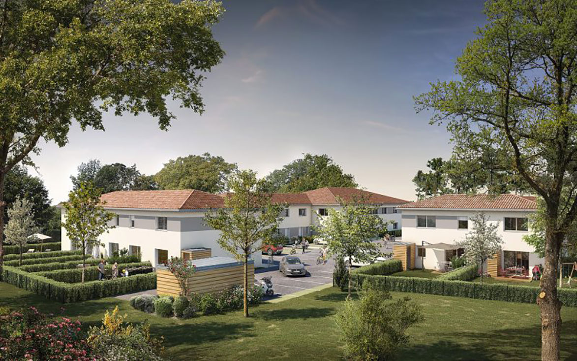 Des jardins complètent les duplex et les appartements au sein du programme « Vista Vinia ». Le label énergétique RT 2012 a été décerné à tous les biens de ce projet.