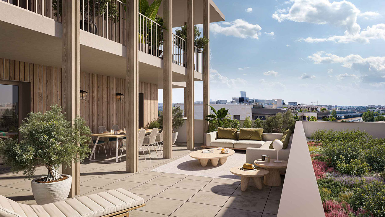 Le programme neuf Bordo Tempo, situé dans la ville de Bordeaux, est composé de 41 lots de type appartement, duplex et stationnement répartis en T2, T2 bis, T3, T4, T5, livrés au 3ème trimestre 2028 et destinés aux différents projets : résidence principale, résidence secondaire et investissement locatif. Ce programme neuf est éligible aux dispositifs LMNP Hors Bail commercial et Droit Commun pour habiter ou investir à Bordeaux. Le programme immobilier Bordo Tempo possède le label énergétique RE 2020.