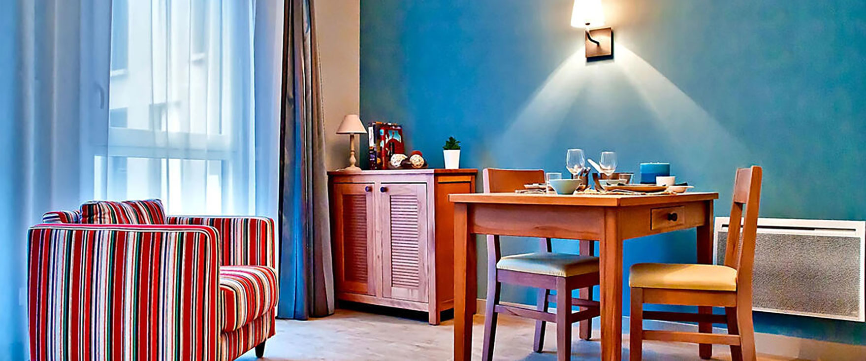 Aménagée dans une ancienne école rénovée et agrandie, la résidence propose 83 appartements, du T1 au T2, entièrement adaptés aux besoins des personnes âgées. Confortables et fonctionnels, ils disposent d’une cuisine meublée et équipée. Les espaces communs, chaleureux et variés, favorisent les rencontres et la convivialité : restaurant ouvert toute l’année avec terrasse, salle d’animation avec espace TV, salle polyvalente, espace bibliothèque et multimédia, ainsi qu’un jardin privatif et sécurisé au cœur de la résidence.