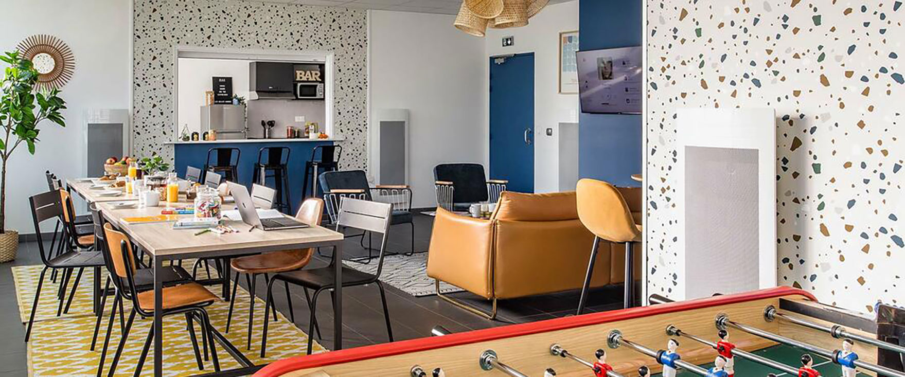La résidence propose 139 appartements meublés et équipés, du studio de 19 m² au T2 de 39 m², dans un environnement sécurisé avec la présence d’un responsable de résidence. Les étudiants disposent d’espaces communs conviviaux favorisant les échanges : salle commune avec télévision, cuisine, babyfoot et espace petit-déjeuner, ainsi qu’une salle de sport et une laverie.