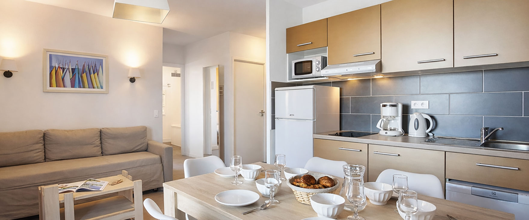 La résidence propose des hébergements confortables et fonctionnels, du studio de 24 m² pour 2 personnes au T4 de 66 m² pouvant accueillir jusqu’à 7 personnes. Les vacanciers profitent de nombreux équipements dédiés à la détente et aux loisirs : espace petit-déjeuner, piscine extérieure chauffée, salle de fitness, espace bien-être avec sauna et hammam, aire de jeux pour enfants, laverie et parking extérieur. Une salle de réunion et un service de location de vélos complètent l’offre.